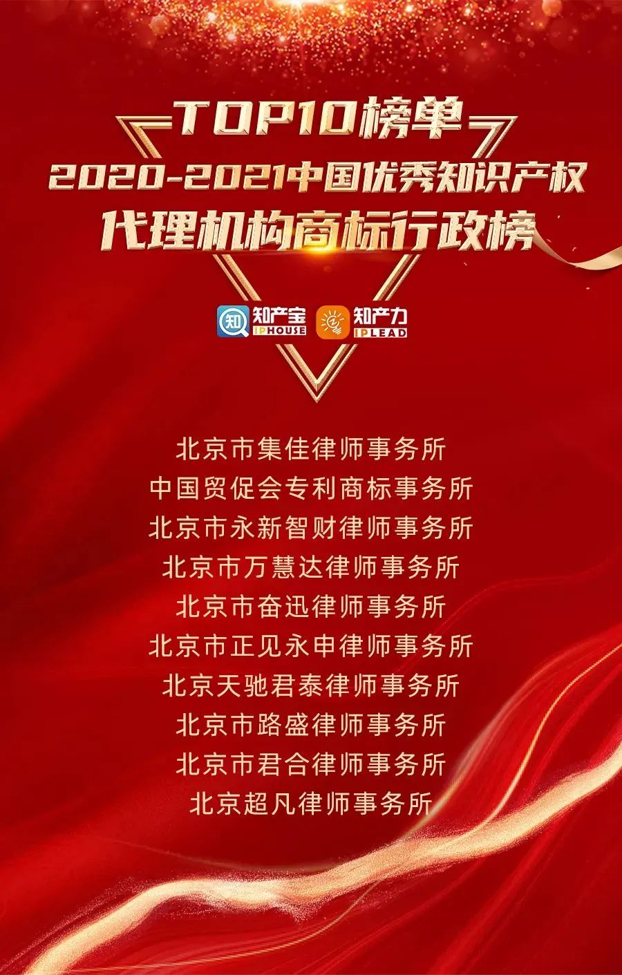 近日,备受业界关注的“2020-2021中国优秀知识产权代理机构榜”正式揭晓,一竞技凭借长期以来在知识产权领域的卓越业绩和处理疑难案件的突出能力,从400余家知识产权代理机构中脱颖而出,荣登“中国优秀知识产权代理机构商标行政榜TOP10”。