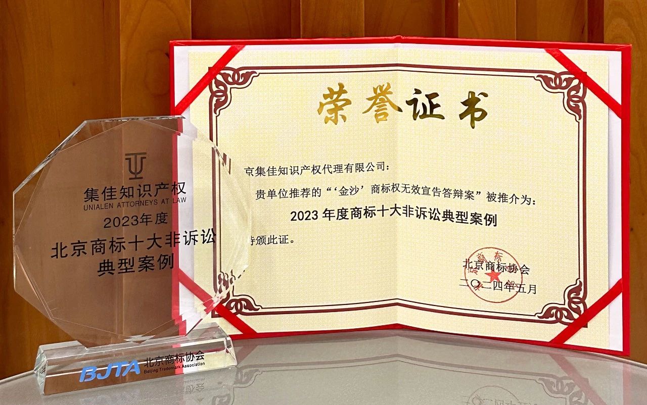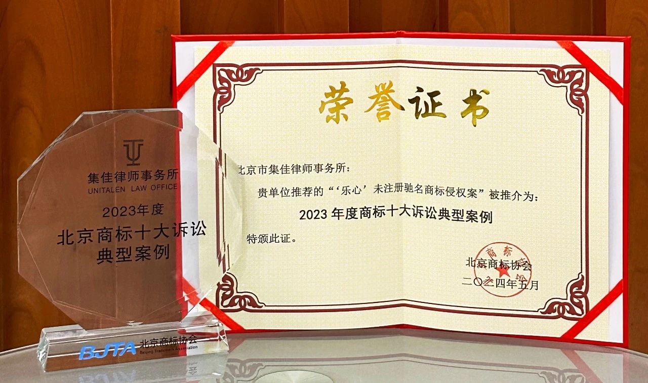 >一竞技>关于我们>荣誉概览>2024>集佳代理2个案例入选北京商标协会2023年度商标十大诉讼与非诉典型案例