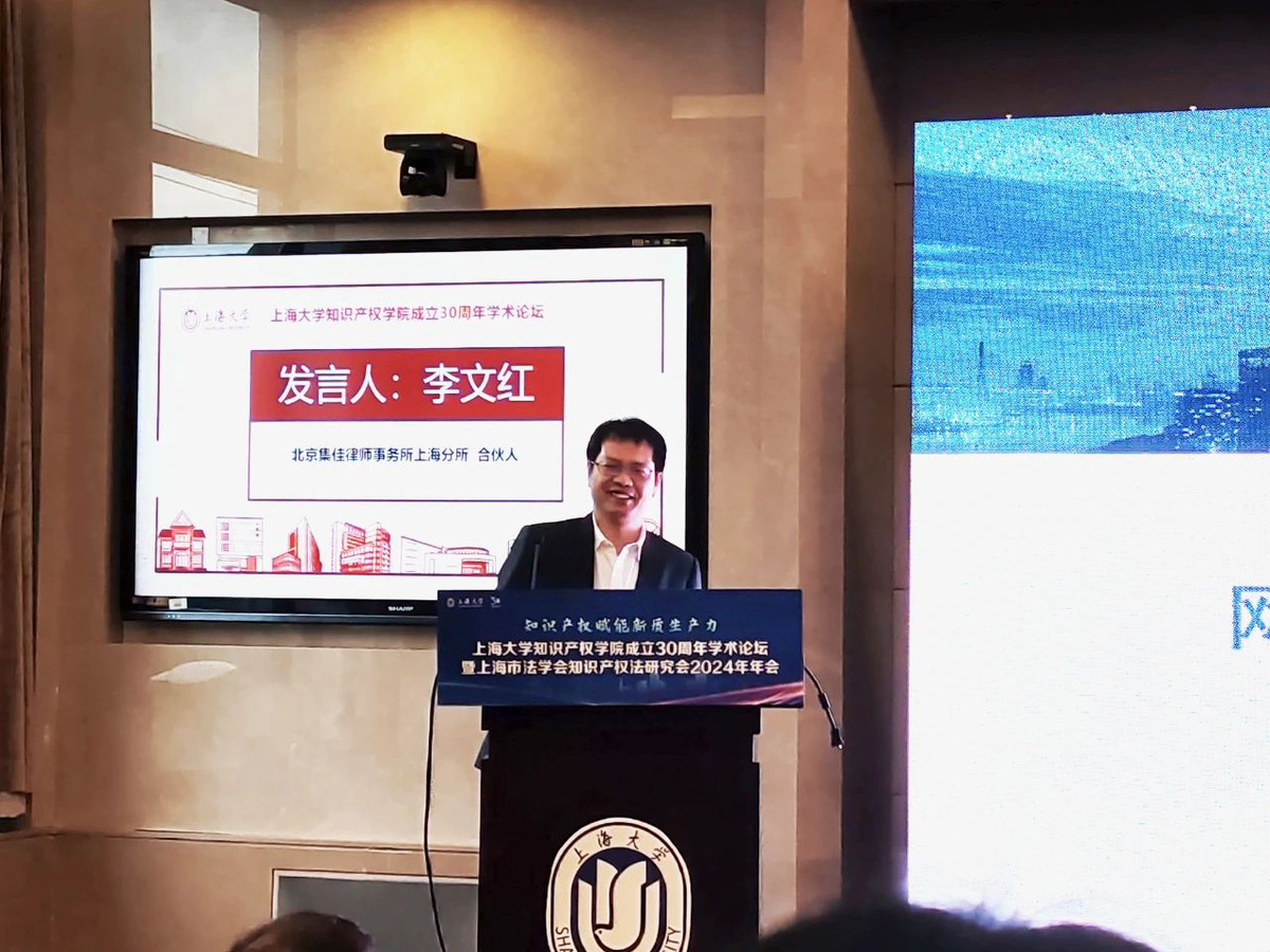 一竞技上海分所主任、高级知识产权师李文红博士应邀出席大会,并在“释放知识产权价值 赋能新质生产力”分论坛上发表演讲,与来自众多高校的专家学者和业界代表共同就知识产权价值的释放与赋能新质生产力的路径进行了深入探讨。