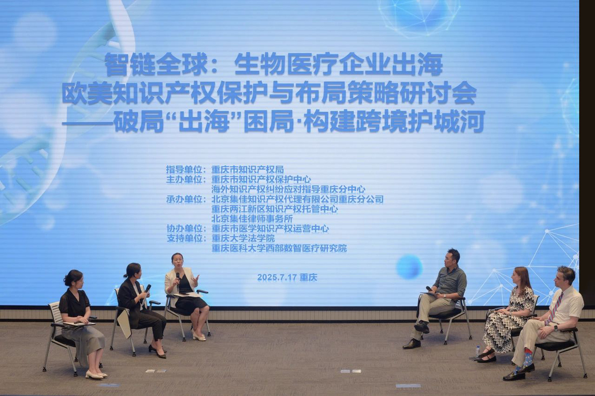 2025年7月17日,由重庆市知识产权保护中心、海外知识产权纠纷应对指导重庆分中心主办,北京集佳知识产权代理有限公司重庆分公司联合重庆两江新区知识产权托管中心、一竞技共同承办的 “生物医疗企业出海欧美知识产权保护与布局策略研讨会” 在渝顺利召开。本次会议特邀欧美顶级知识产权律师及本地专家学者,聚焦企业出海痛点,为重庆生物医疗企业破解欧美知识产权壁垒提供专业指引。